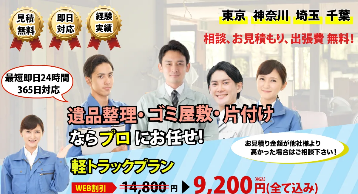 関東エリアで引っ越しに伴う不用品の処分をご検討中なら、アサヒクリーンハウスJPにお任せください。当社は「関東エリア 不用品回収 料金が分かりやすい」「即日対応してくれて安心」「料金が安い」と多くのお客様にご支持いただいています。