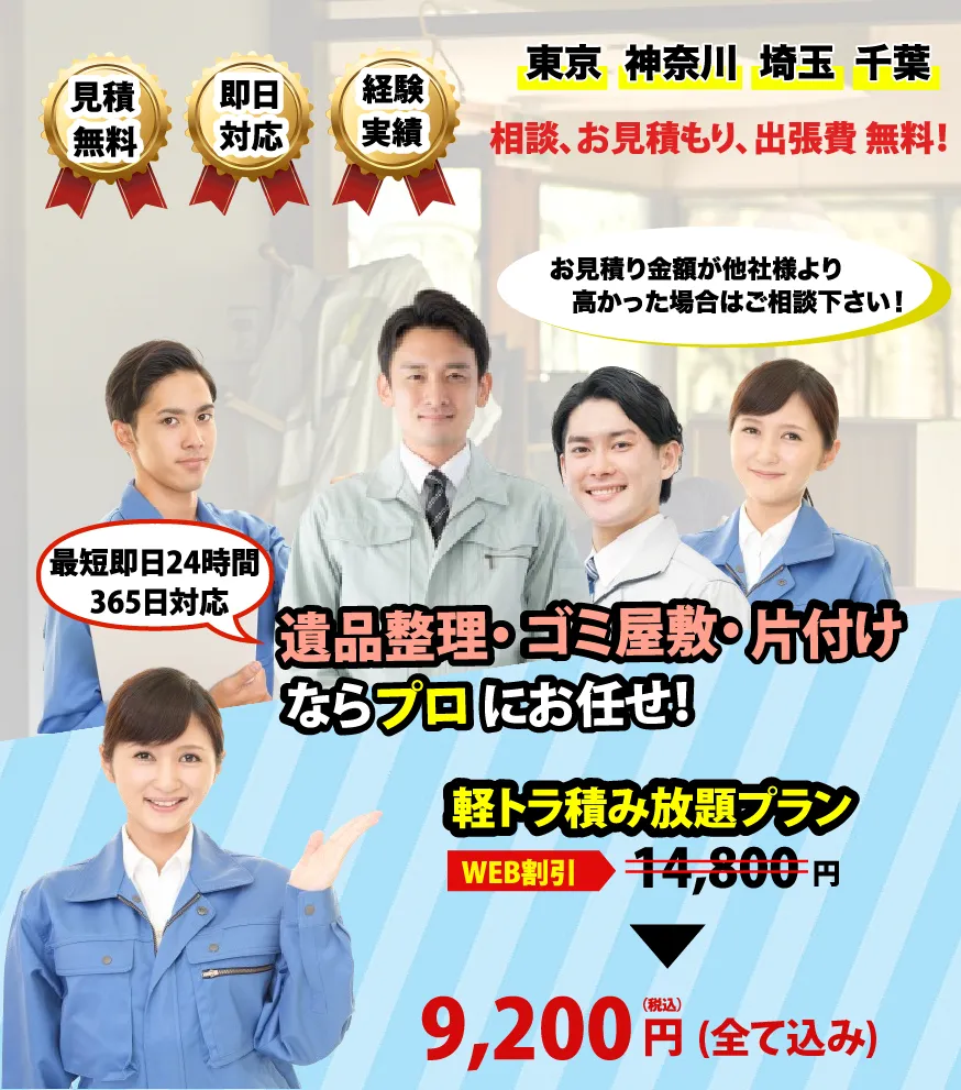 初めて不用品回収をご利用の方も、事前に無料でお見積もりを提示し、追加料金の心配なくご利用いただけます。